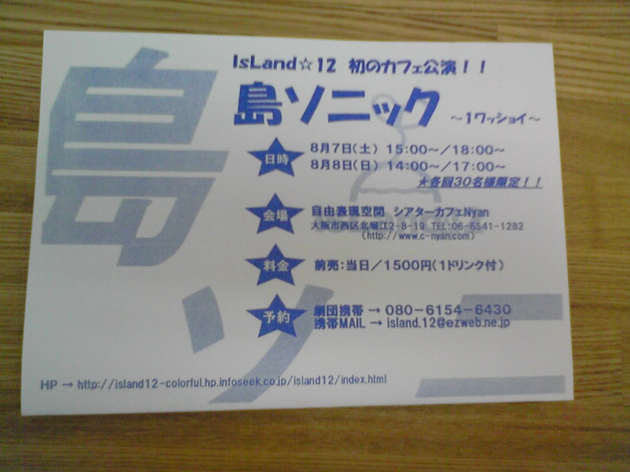 「IsLand☆12」の今後の公演情報や劇団員の客演情報や日常をオモシロ可笑しくお伝えしていきます!